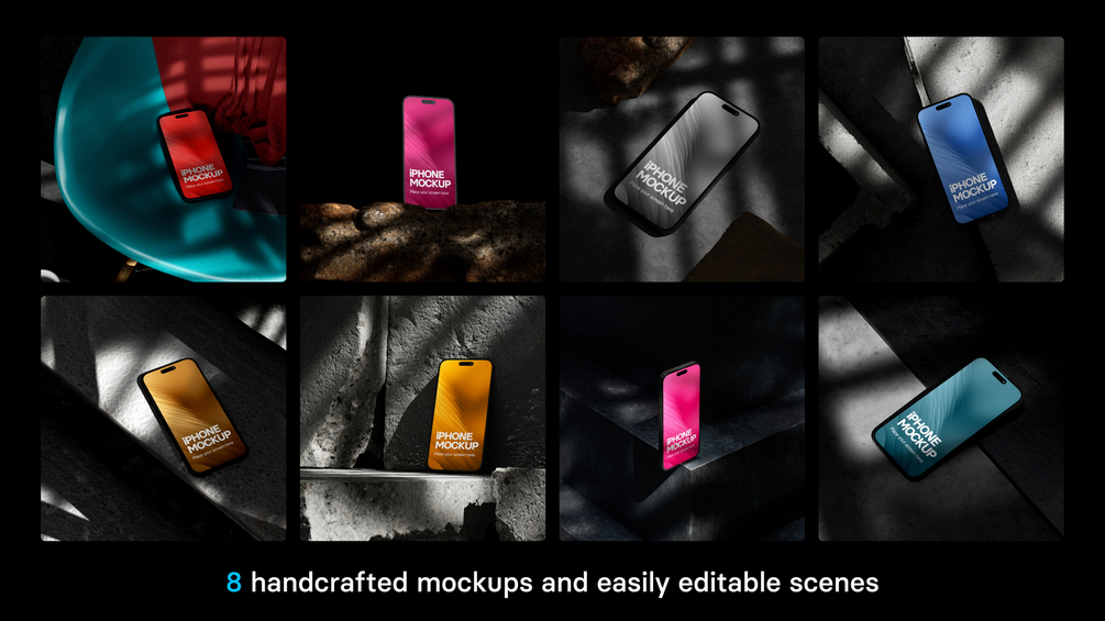 8 unique handcrafted iPhone 14 Pro Max mockups